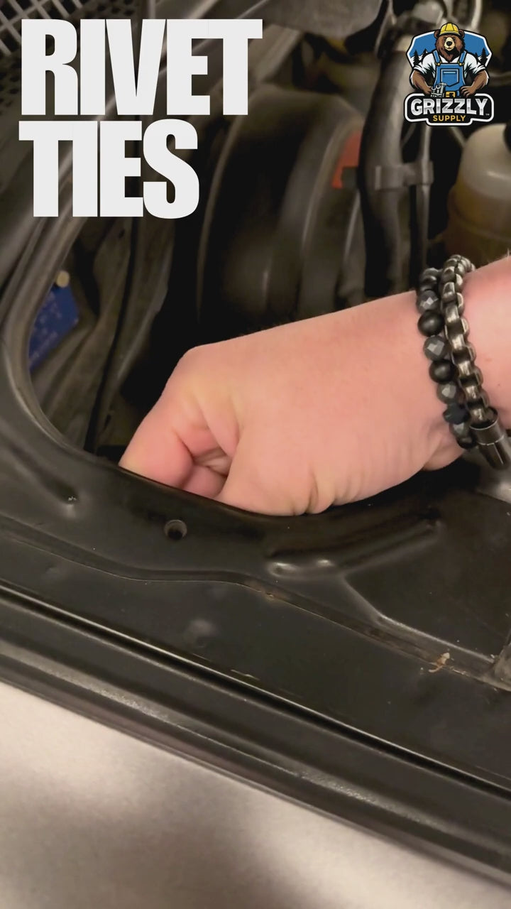 Instead of installing separate clips or mounts, simply bundle the wires and press the rivet head into a pre-drilled hole for a clean, secure installation.